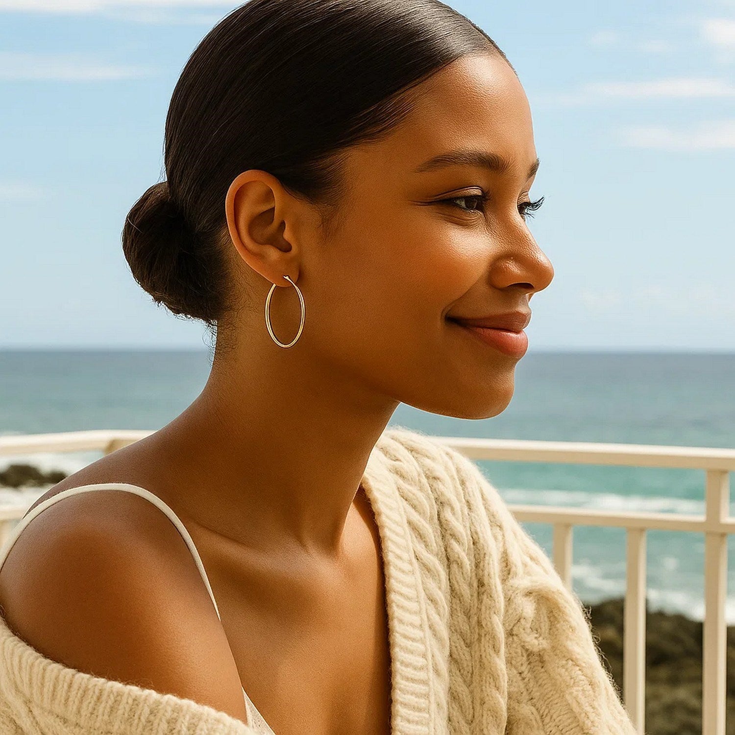 The everyday hoop, done right. These 10K yellow gold polished hoop earrings offer a slim, classic silhouette at 1.5mm wide and 30mm in diameter — the perfect size for all-day wear that transitions seamlessly from morning to evening.